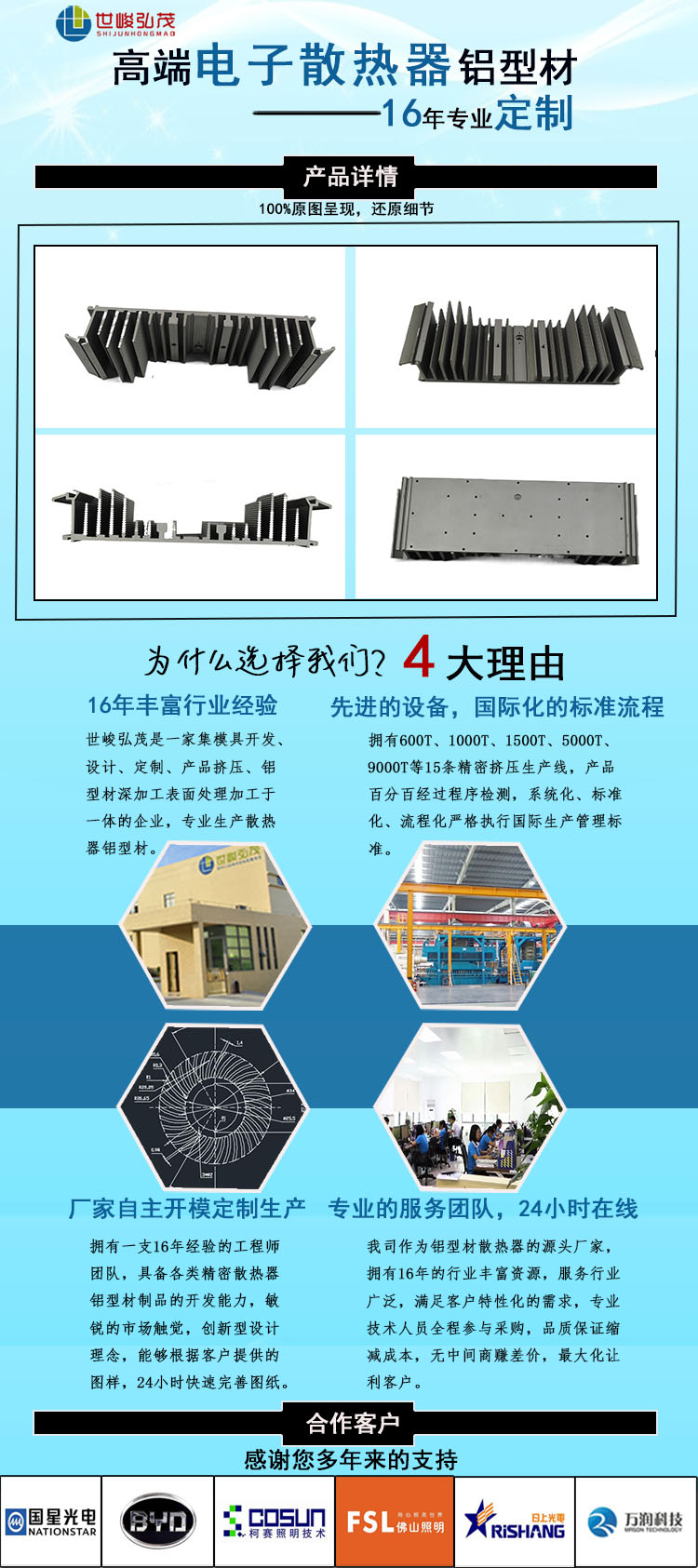 產品材質:選用國標AA6063-T5高純度鋁合金,密度高、可塑性強。
